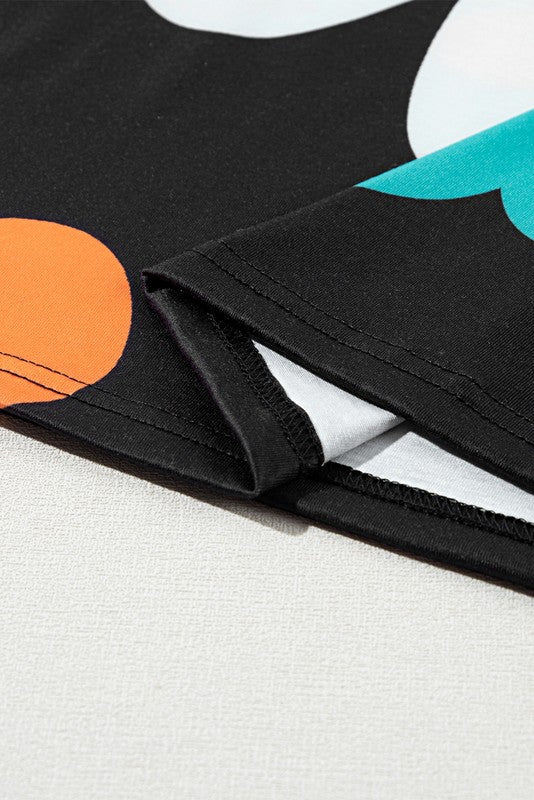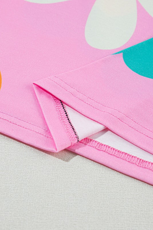 With its eye-catching design, this tee adds a pop of color and fun to your wardrobe, perfect for a playful and feminine look.