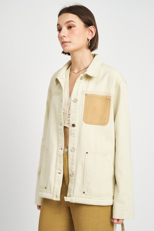 CONTRASTED DENIM JACKET WITH DRAWSTRING