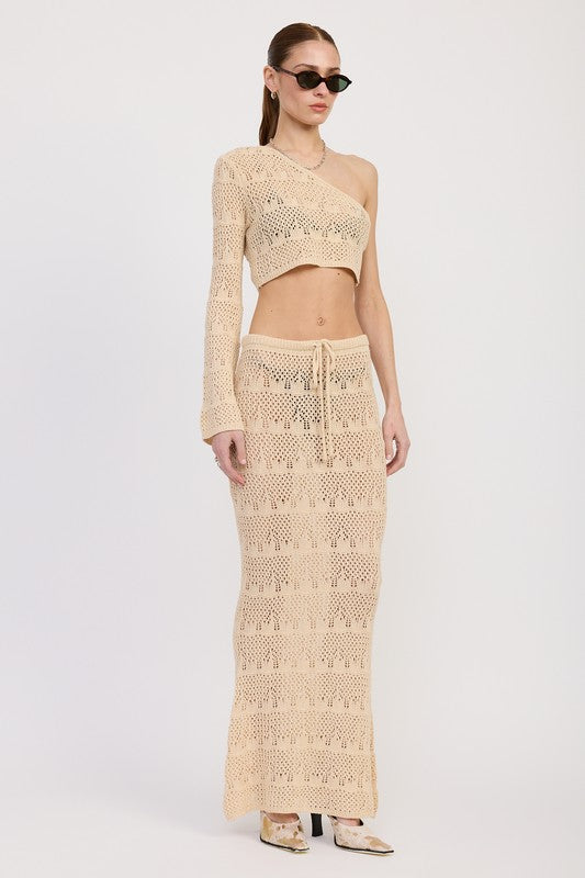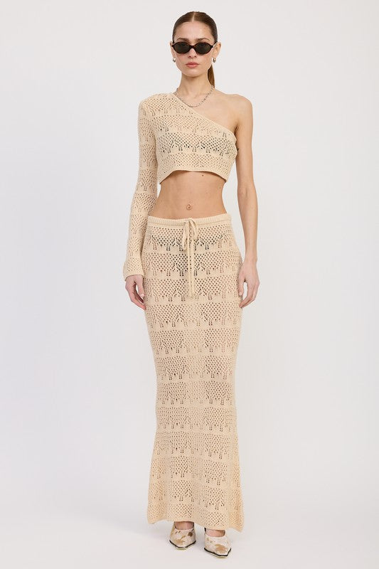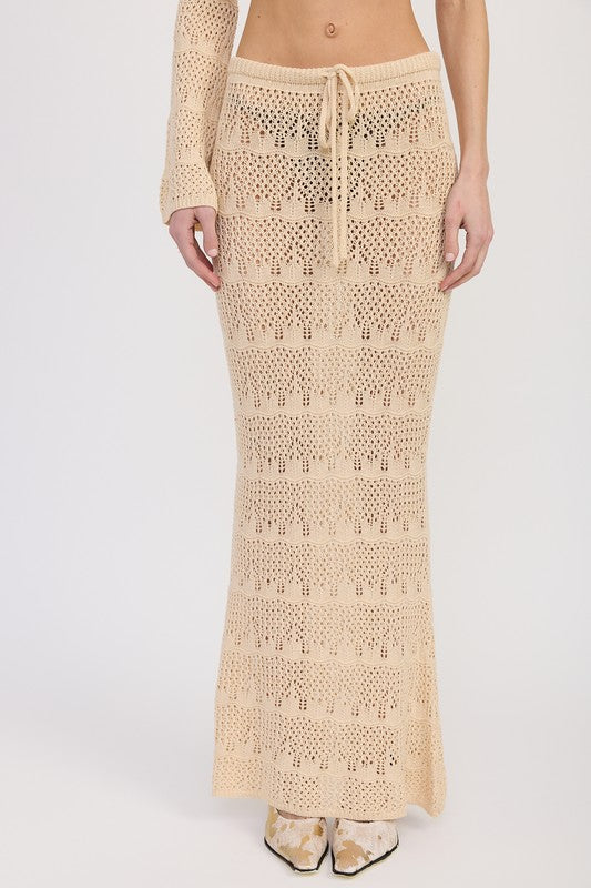 CROCHET MAXI SKIRT WITH WAIST DRAWSTRINGS