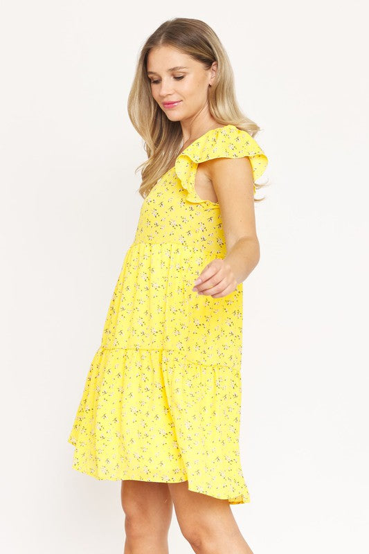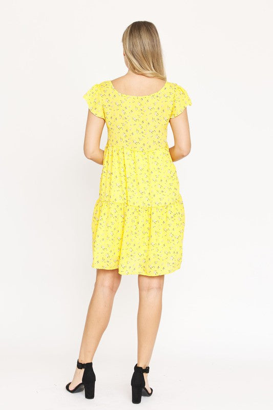 Floral Flutter Sleeve Tunic,Yellow color has lining ,Back color has no lining