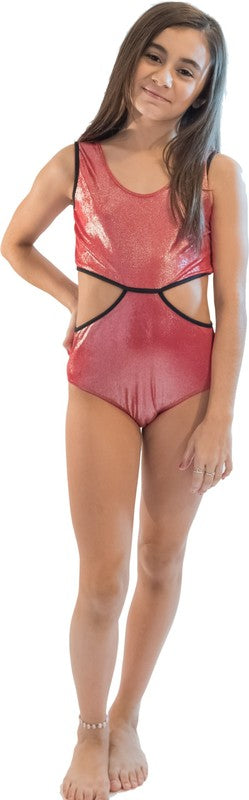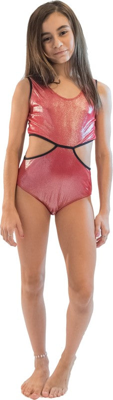 GIRL'S RED SHIMMER MONOKINI BATHING SUIT