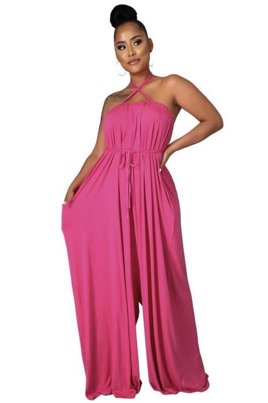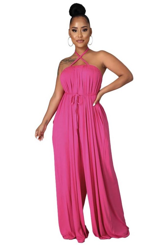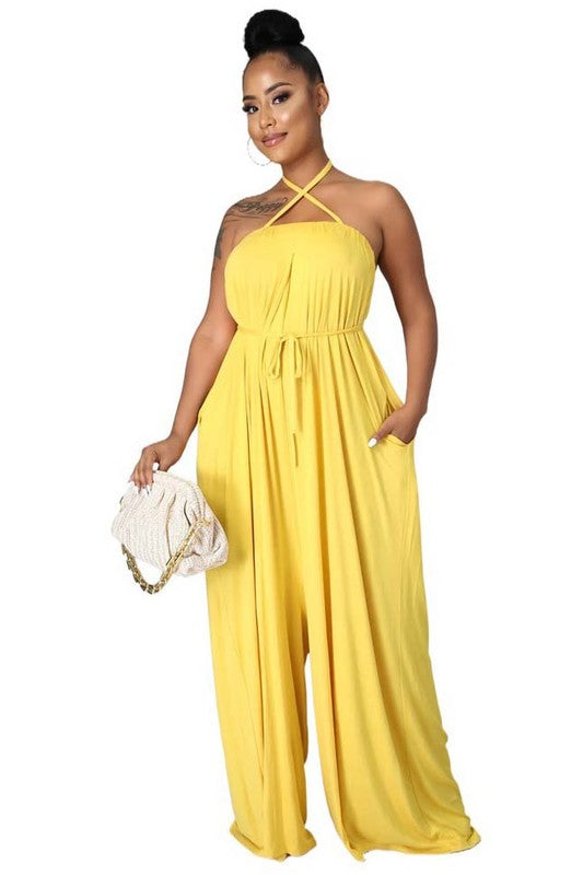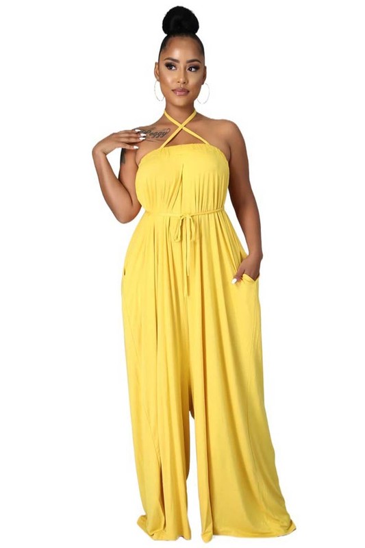 Sexy summer jumpsuit, sleeveless ,neck or shoulder thin strip, chiffon style side pocket, wide leg style pants