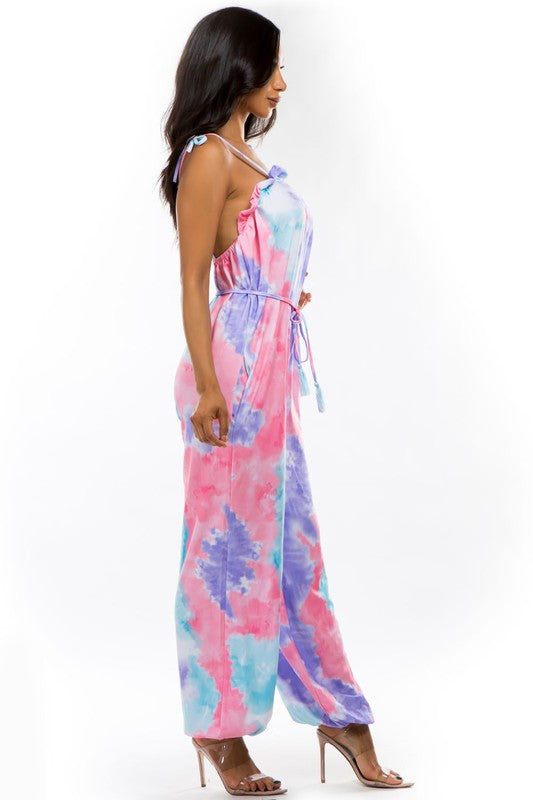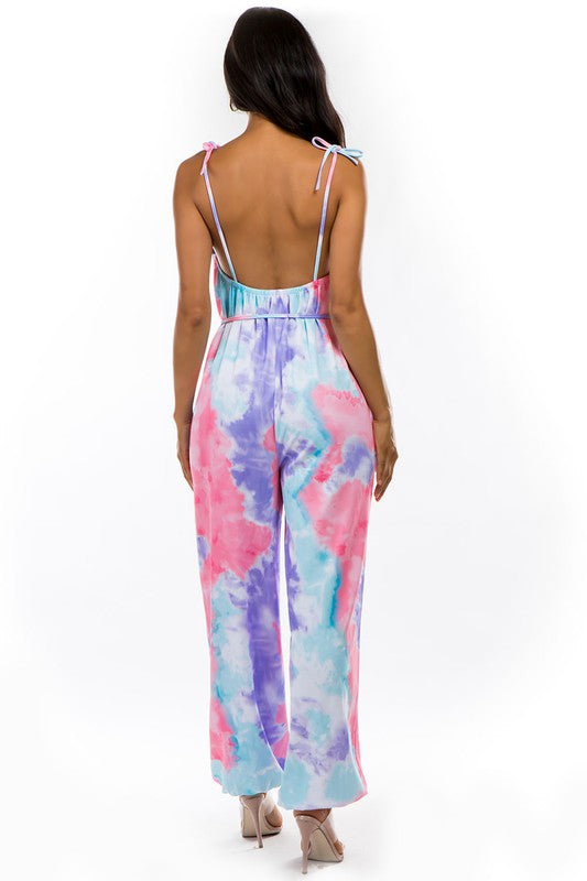 Sexy jumpsuit, sleeveless thin strap, open back , side pocket